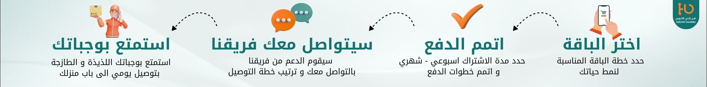 عند اختيارك للباقة المناسبة يمكنك وضعها في السلة ثم اتمام الشراء بطريقة الدفع المناسبة لك و سيتواصل معك فريقنا لمساعدتك في اختيار الوجبات الصحية المثالية التي تناسب احتياجاتك الشخصية
